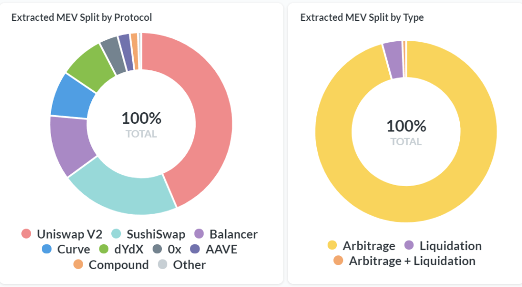 - Priority Transactions – These transactions are time-sensitive. Prices of currencies are constantly changing, which means to hit limit/spot price, the transaction must be put through ASAP. Priority transactions are usually DEX exchanges. Each DEX list thousands of currencies and multiple DEX’s exist. The open-source nature of crypto allows anyone to fork a DEX or a new currency at the click of the button. Sushiswap, a popular open-source DEX, is a fork of Uniswap. Coincidentally, the two most common places for MEV to be found. Thousands of exchanges can be created, unlike traditional finance exchanges. This leads to information silos across DEX’s and more arbitrage opportunities to be exploited. MEV is most commonly found on DEX exchanges, which are characterized as priority transactions.